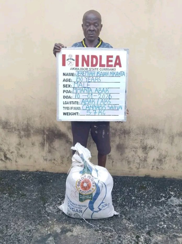 Barely three years after he was arrested, prosecuted and sentenced to two years imprisonment for dealing in illicit drugs, an 80-year-old grandpa Jeremiah Isaiah Nkanta has again been nabbed by operatives of the National Drug Law Enforcement Agency (NDLEA) for returning to the criminal trade.