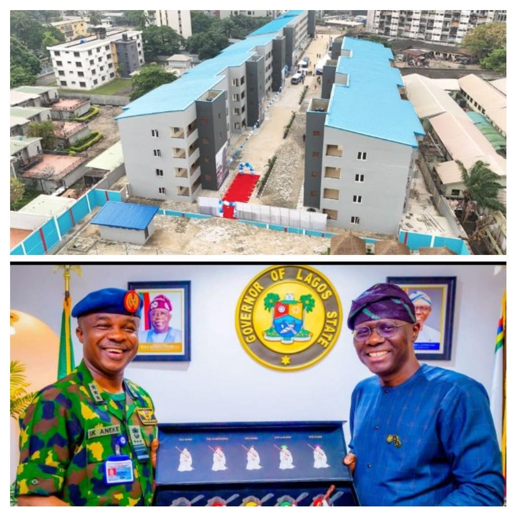 As part of the tour, the CAS paid a courtesy visit to Lagos State Governor Babajide Sanwo-Olu, reaffirming the strong partnership between the NAF and Lagos State Government and commending the state’s leadership in infrastructure development and security. Governor Sanwo-Olu, in turn, reiterated the state’s commitment to close cooperation with the Armed Forces, stressing the importance of security to economic growth and social stability. The CAS also acknowledged the synergy between the NAF and other security agencies under Operation MESA, particularly in air surveillance and intelligence support, and commissioned major welfare and infrastructure projects at 055 NAF Camp, Legico Barracks, including two blocks of 24 two-bedroom flats, a block of 40 one-bedroom flats and a purpose-built sports complex to promote personnel fitness and wellbeing. He described the upgraded facilities as among the most dignified residential environments for service personnel nationwide and he praised the former CAS Air Marshal HB Abubakar (rtd) for initiating the project and urged occupants to uphold discipline and ownership.