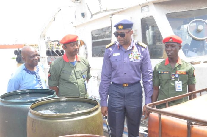 Addressing the media at a press briefing on Thursday 16th October 2025, the Commander NNS BEECROFT, Commodore Paul Ponfa Nimmyel, represented by the Executive Officer, Captain Idongesit Udoessien, disclosed that the operation was made possible through the effective deployment of the Nigerian Navy’s Maritime Domain Awareness Facility, notably the Western Regional Control Centre of the Falcon Eye Alignment System. The system enabled real-time surveillance and swift interception of the vessel. Upon sighting the patrol team, the suspects reportedly abandoned the boat and fled the scene. The seized product has since been handed over to the Nigeria Security and Civil Defence Corps (NSCDC), Lagos State Command, represented by Superintendent Amoo Kehinde, for further investigation and necessary action.