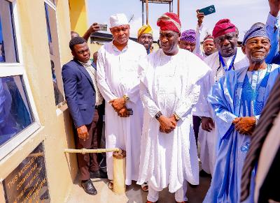 L-R: Special Adviser to Lagos State Governor on Islamic Matters, Hon. Abdullahi Jebe; Lagos State Deputy Governor, Dr. Kadri Obafemi Hamzat, Chairman, Working Committee, Dr. Suleman Adams, and Baba Adini, Ado-Ile Central Mosque, Hon. Yaya Dosunmu at the unveiling of the Commission Plaque, held at the Mosque, Eti-Osa, Ajah, Lagos, on Sunday.