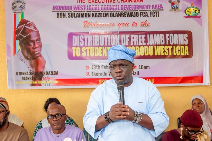 The Executive Chairman of Ikorodu West Local Council Development Area (LCDA), Hon. (Otunba) Sulaimon Kazeem Olanrewaju (FCA, FCTI), has launched the 5th edition of the annual free JAMB/UTME form distribution exercise. The initiative targets resident and indigent students, underscoring the Council’s pursuit of educational excellence.